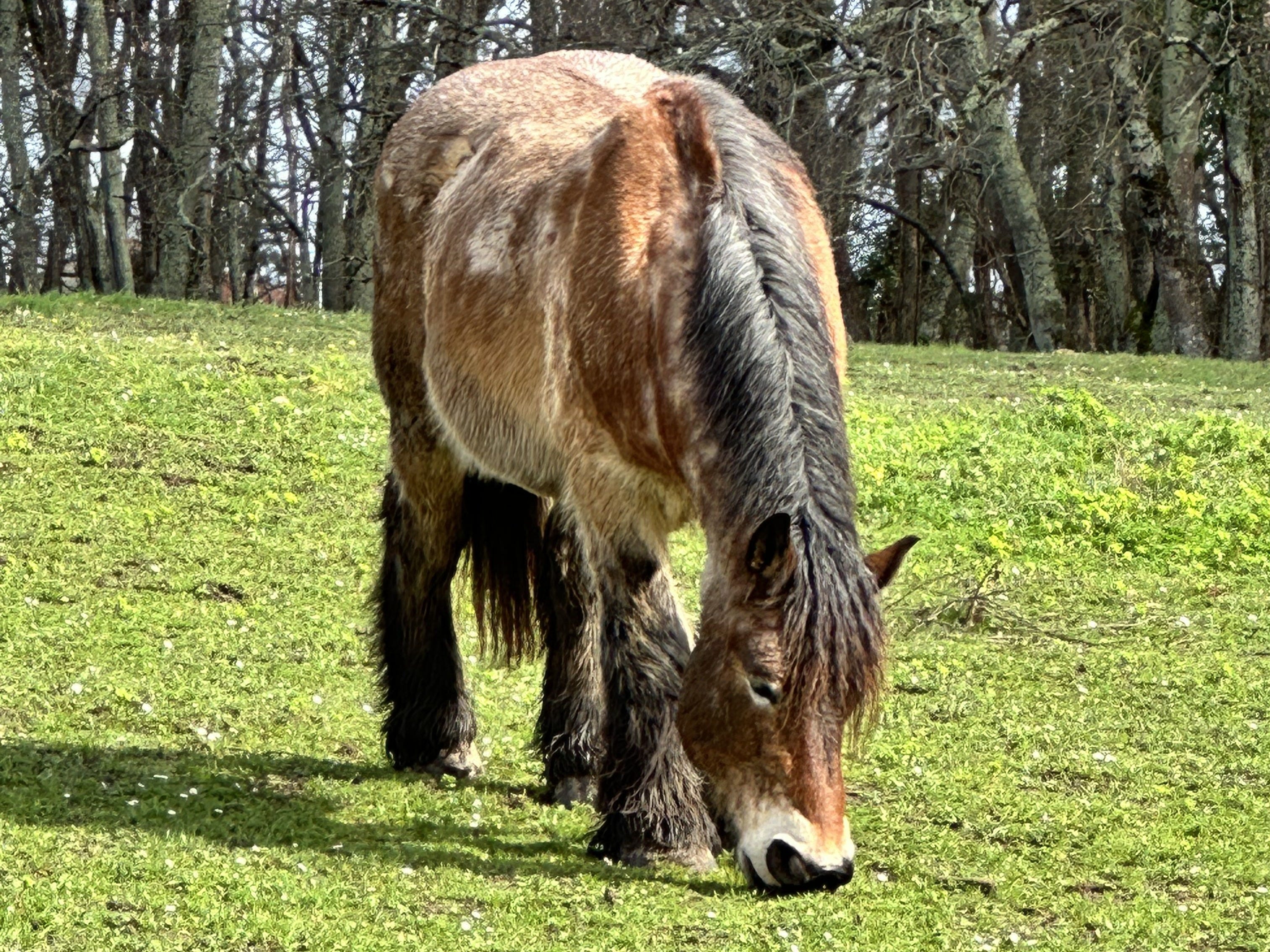 The estate’s approach is built on ecosystem, not intervention. Forest, meadows, and a pond account for roughly half the property—not remnants of neglect, but a deliberate buffer maintained to keep the vineyard in ecological balance. Five horses of different breeds work the soil, their varying walking patterns helping to avoid uniform compaction. Natural plants grow between the rows as indicators of soil condition—not seeded cover crops, but whatever the land produces on its own, read against generations of observation. Nature, in this context, is the most reliable textbook.
