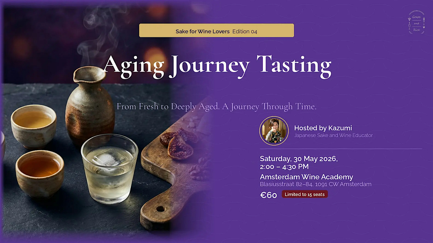 Much of what this article touches on — the character of aged sake, their difference in style, how temperature and time and structure interact — is easier to understand through tasting than through reading. I explore these questions in a workshop format in Amsterdam, comparing young and aged sake, and examining how the structural ideas discussed in my earlier writing on aged sake play out in the glass over time. If you want to taste and understand aged sake more directly, you are welcome to join.